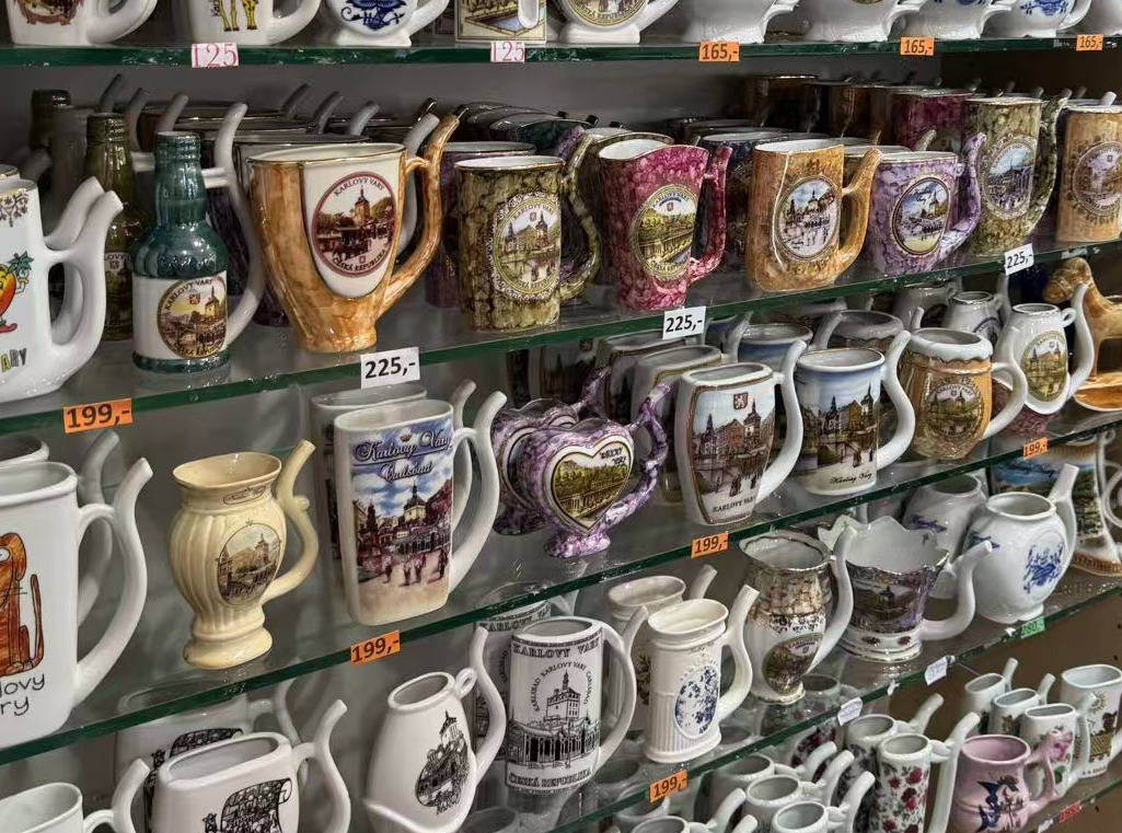 但这个小镇最有特质的是它的温泉特质,不错喝,竟然每个旅游的来宾皆拿着陶瓷小壶、玻璃小壶、金属小壶等各样各样的小壶,在每个不同温度的温泉口下,接水喝,摆pose拍照,相配相配有特质。按当代的科学表面措施进行检测,发现卡罗维发利泉水中含有对东谈主体成心的矿物资达32至35种之多。