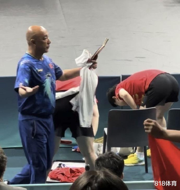 在混双决赛夺冠后,王楚钦把拍子放在地上,没念念到赶巧被蜂拥而至的照相记者给踩断了。