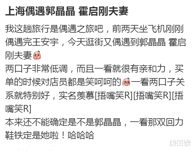 偶遇郭晶晶鸳侣的网友还写了一小段翰墨,夸郭晶晶鸳侣相配低调,一看就很有亲和力,买单的时分对伙计都是笑呵呵的,还称郭晶晶与霍启刚关连一看就卓著好。
