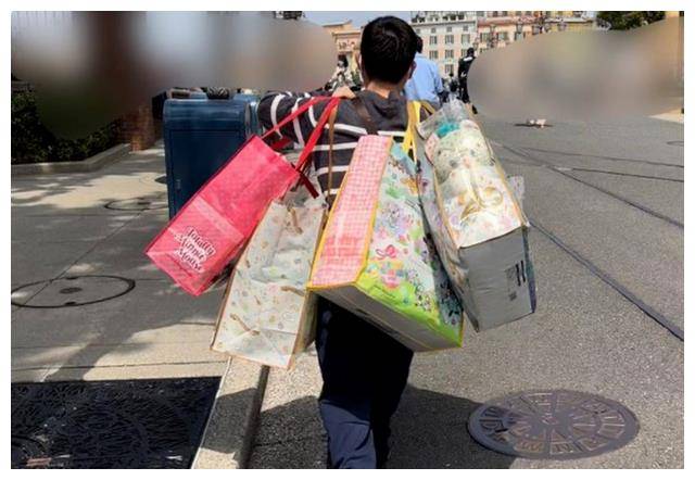 专卖店门口坐着好多说汉文的东谈主,他们拎着大包小包,内部装的齐是迪士尼独揽产物。