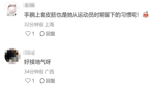 网友说,看来郭晶晶还一直保握着畅通员时期留住的民俗啊,连5毛钱的皮筋王人一直套在手腕上,的确太接地气了。