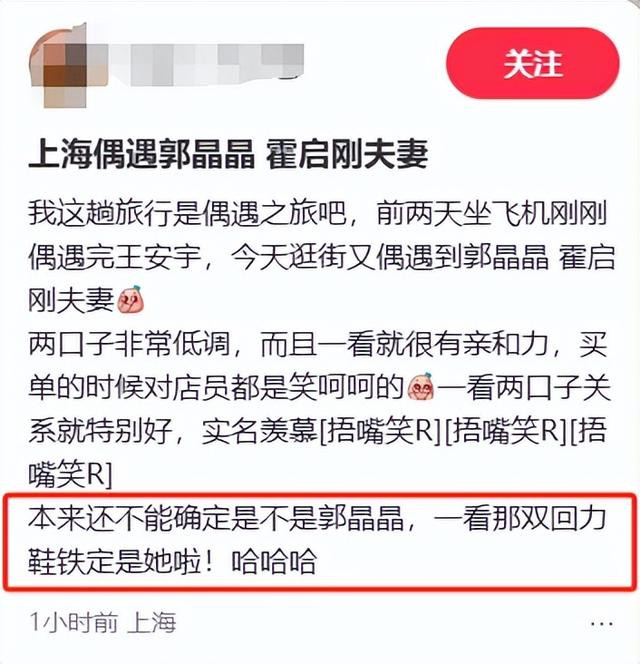 一开动,网友看见郭晶晶的背影时还不敢细目,因为从来莫得见过本东谈主,而况其时郭晶晶和霍启平正在结账,是背对着网友的,根柢看不见正脸。
