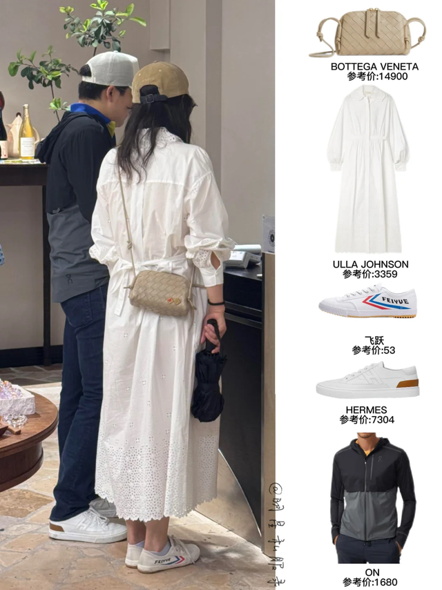 但郭晶晶的包包和衣服不算低廉,BV包包是14900元,而白色长裙是ULLA JOHNSON的,外传是英格兰刺绣,要价3359元。