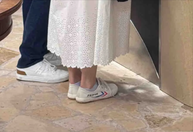 而霍启刚脚上的小白鞋果然是爱马仕的,要价7304元,王人能买到146双郭晶晶的鞋子了。网友忍不住戏弄:飞跃配爱马仕,也就这两口子能这么穿搭了吧?