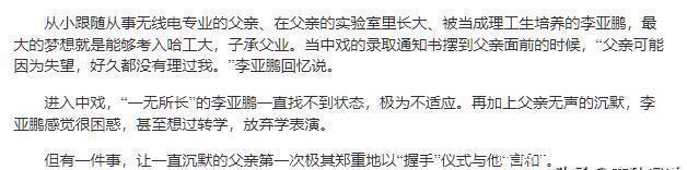 刚接到中式见告书时,李亚鹏回忆说:“父亲可能因为失望,好久王人莫得理过我。”