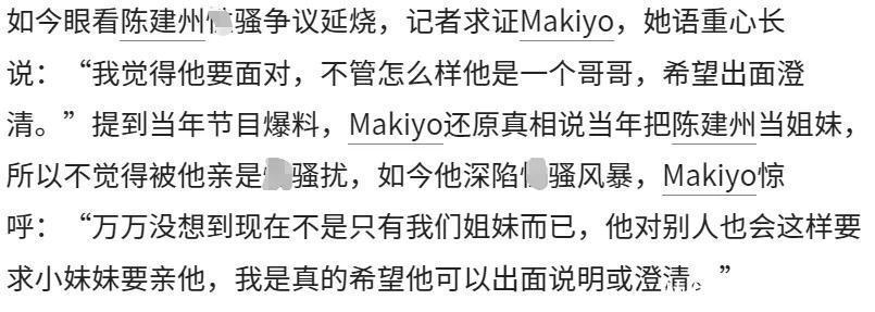 范玮琪用陈建州滴酒不沾否定郭源元的指控,连好友Makiyo都看不下去,劝陈建州出来濒临;